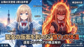 お隣の天使様2期3話を還暦エンジニアが構造解析。「明日のオムレツ」という予約票に宿る、地続きの愛の正体とは?完璧な美少女が「怒り」で証明した、記号ではない生身の愛。効率やAIでは決して翻訳できない、泥臭くも温かな再生の記録を、札幌の北の空の下から徹底点検します。
