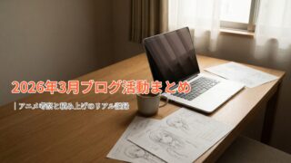 実績 2026年3月ブログ活動まとめ|アニメ考察と積み上げのリアル記録 読者がスクロールする手を止めて見入るほど魅力的なメタディスクリプション2026年3月のブログ活動を振り返り。アニメ感想記事の更新状況や実績、作品ごとの考察をまとめて紹介。継続することで見えてきた気づきと成長の記録を詳しく解説します。 2026.03.21 実績